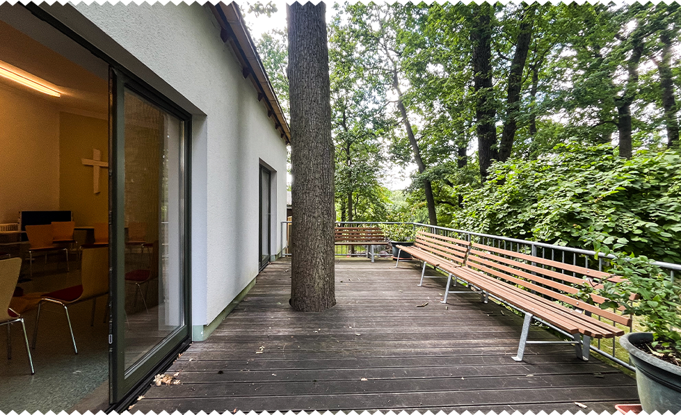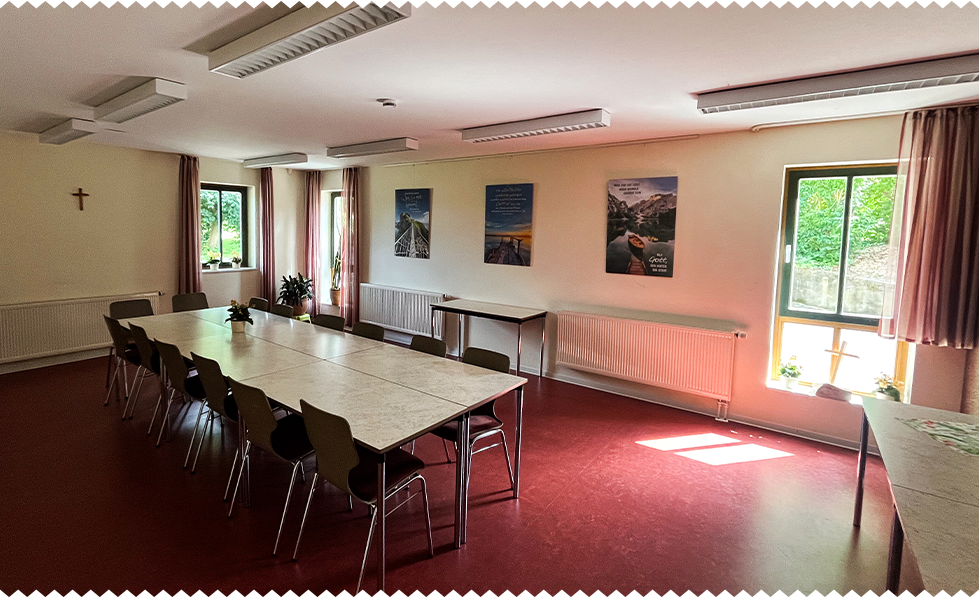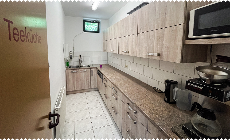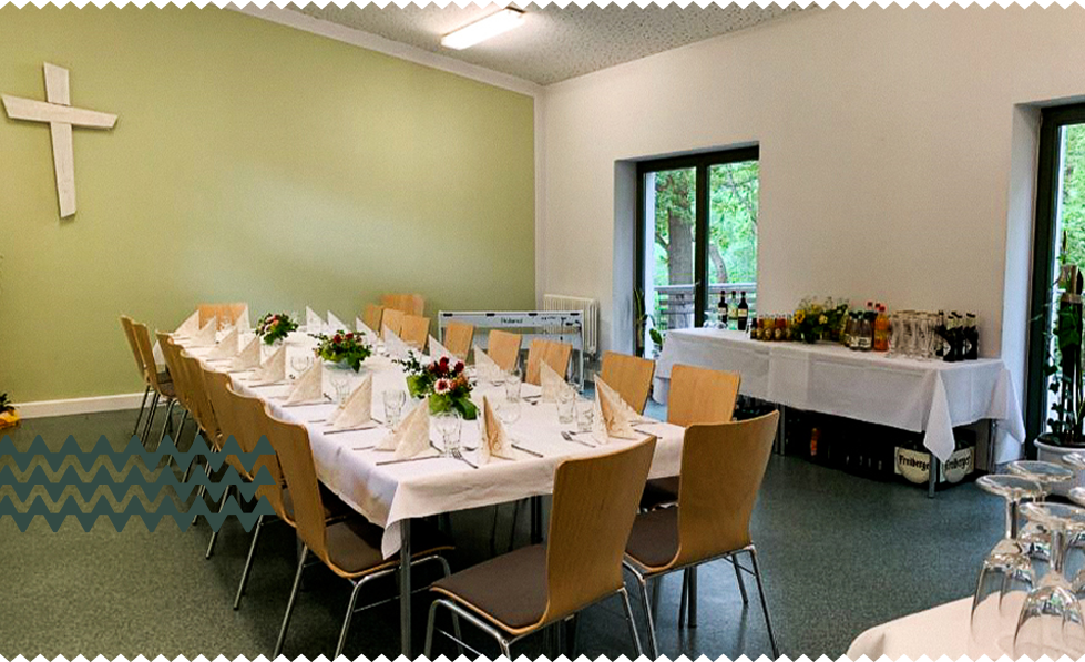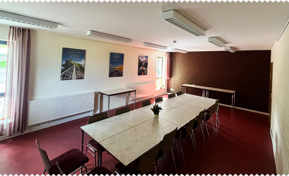 Dieser Tagungsraum steht losgelöst vom Freizeithaus und kann einzeln gebucht werden. Die Küche ist mit Ofen, Kühlschrank und Geschirrspüler gut ausgestattet. Durch seine Terrasse mit „Blick in den Wald“ eignet sich der Raum super für Feierlichkeiten oder Seminare mit bis zu 20 Personen.
