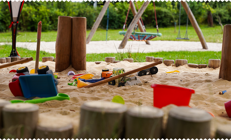 Unser Spielplatz bietet Raum zum Klettern, Rutschen, Schaukeln und Toben. Und das Beste: Die Eltern können dabei ganz entspannt in der Nähe chillen.