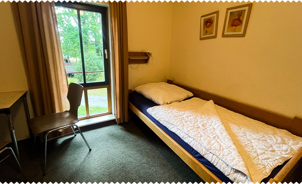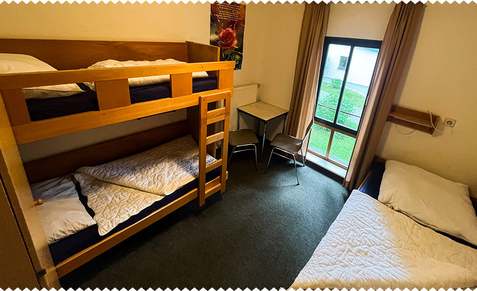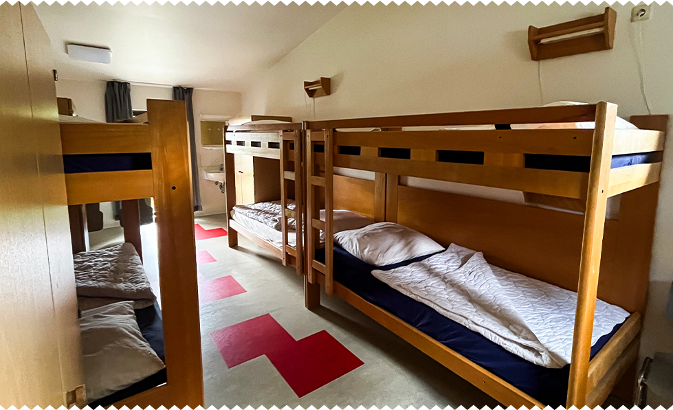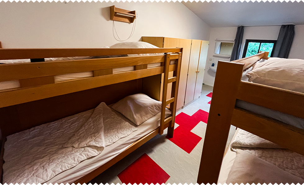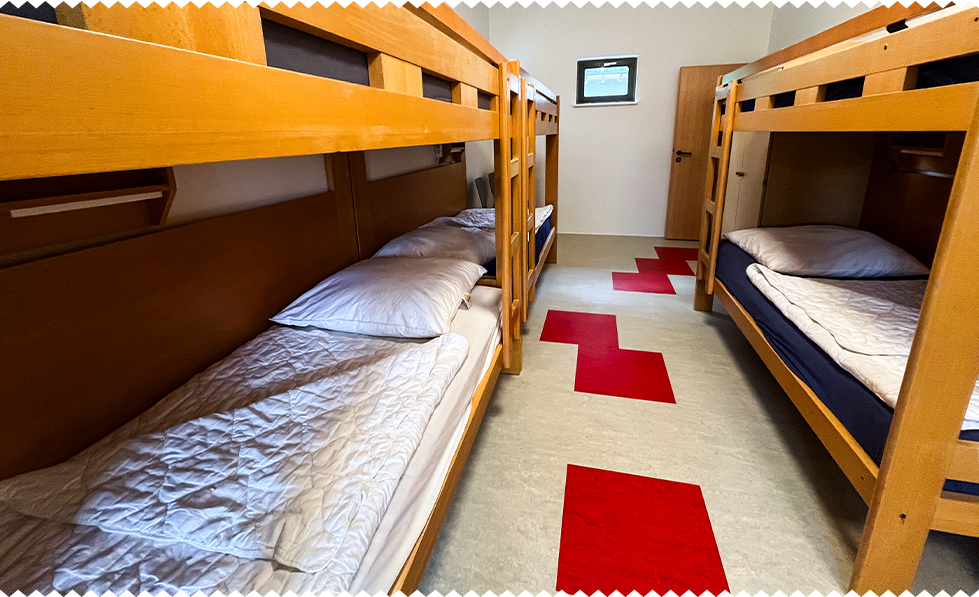 Mehrbett-Feeling und Platz für Gespräche bis tief in die Nacht. Ob mit der Klasse, Jugendgruppe oder Freizeit-Crew – perfekt zum schlafen, gemeinsam lachen und zusammen wachsen. Sechs Vierbettzimmer und ein Sechsbettzimmer stehen zur Verfügung – Dusche und WC befinden sich auf dem Gang.