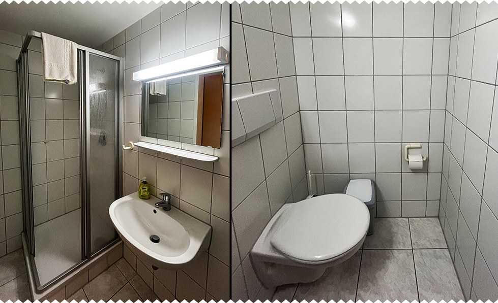 Außerdem haben wir zwei barrierefreie Zimmer mit behindertengerechtem Bad – ruhig gelegen, gut erreichbar und genauso gemütlich wie der Rest.
