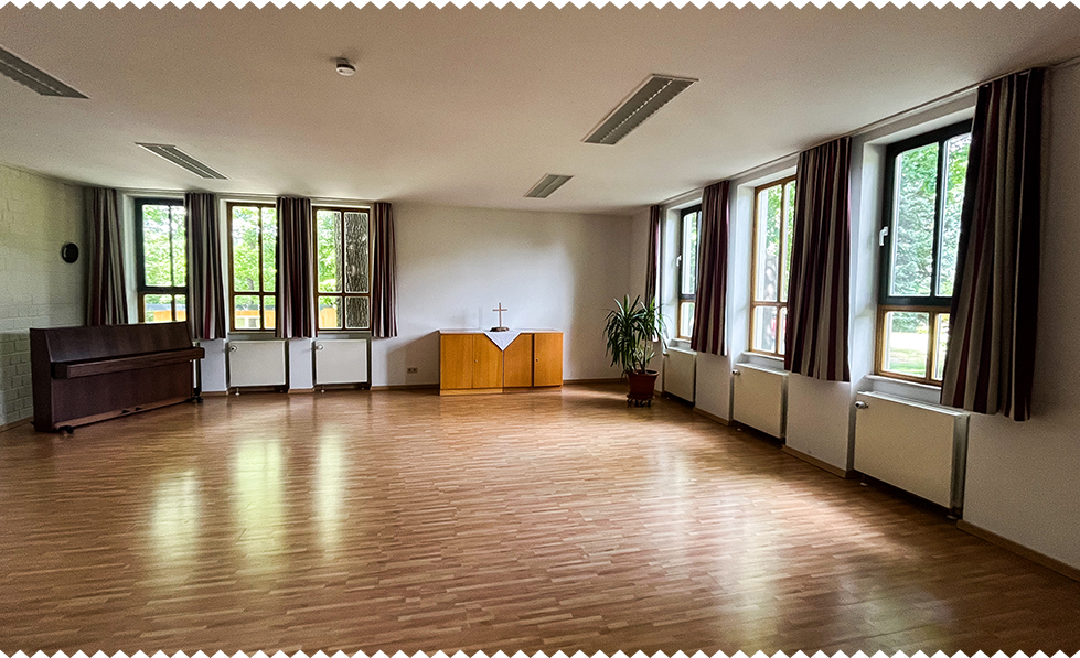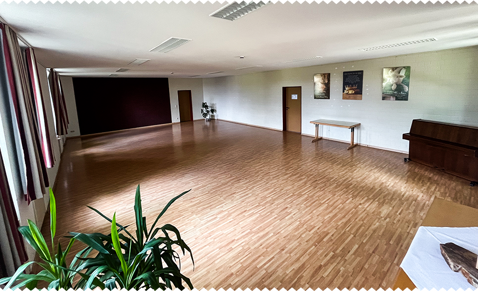 Unser großer Saal samt Klavier bietet bis zu 90 Personen einen Platz. Bestens geeignet für große Feierlichkeiten, Seminare oder Versammlungen mit eigener Teeküche. Tagungstechnik – z.B. Beamer, Leinwand, Fliphchart, Tafel, Lesepult – sind auf Anfrage erhältlich.